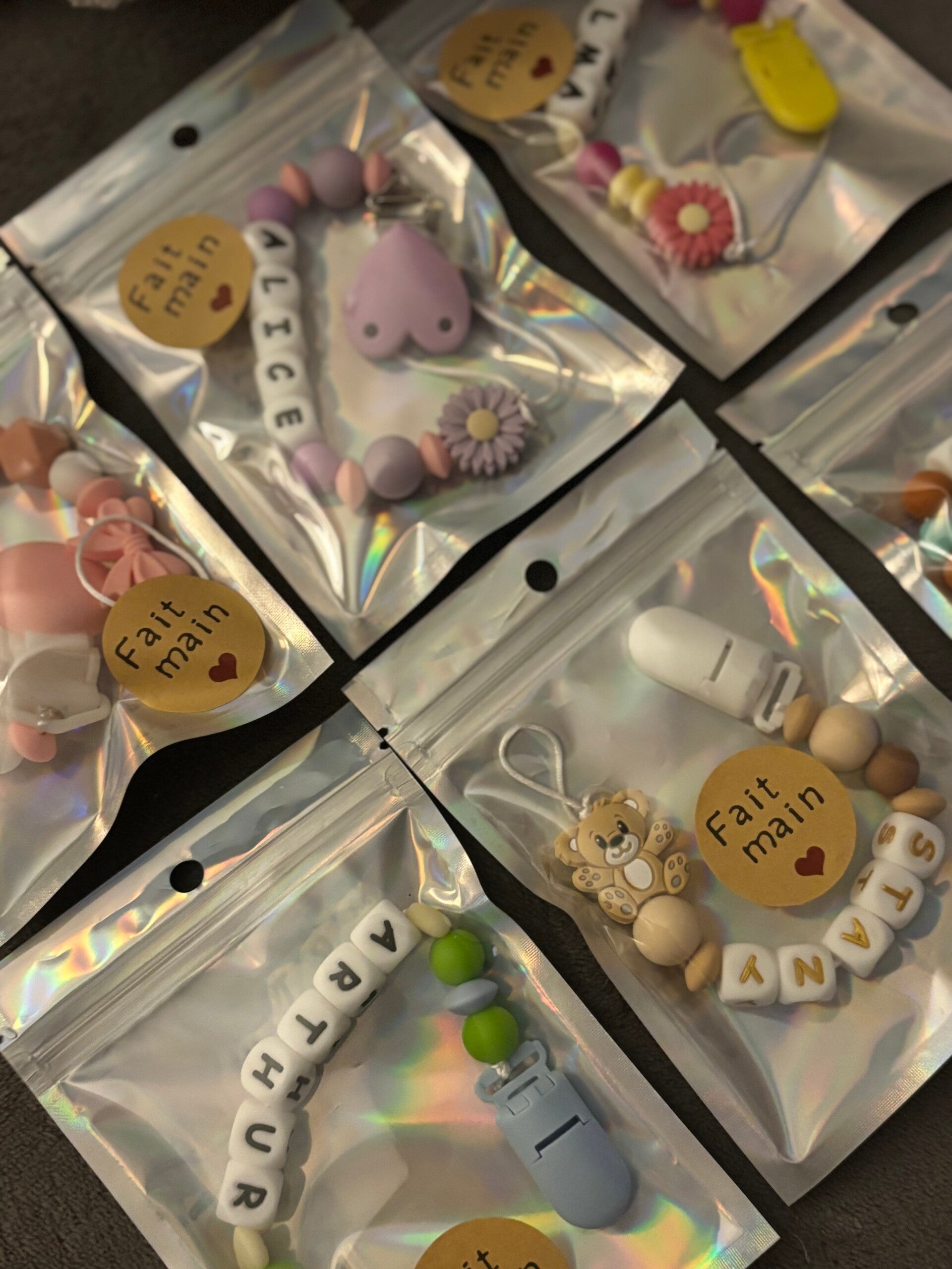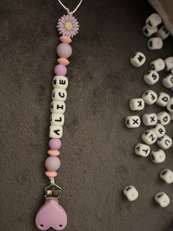 Pratique et unique, cette attache-tétine se personnalise entièrement pour créer un accessoire coloré, fun et à votre image.